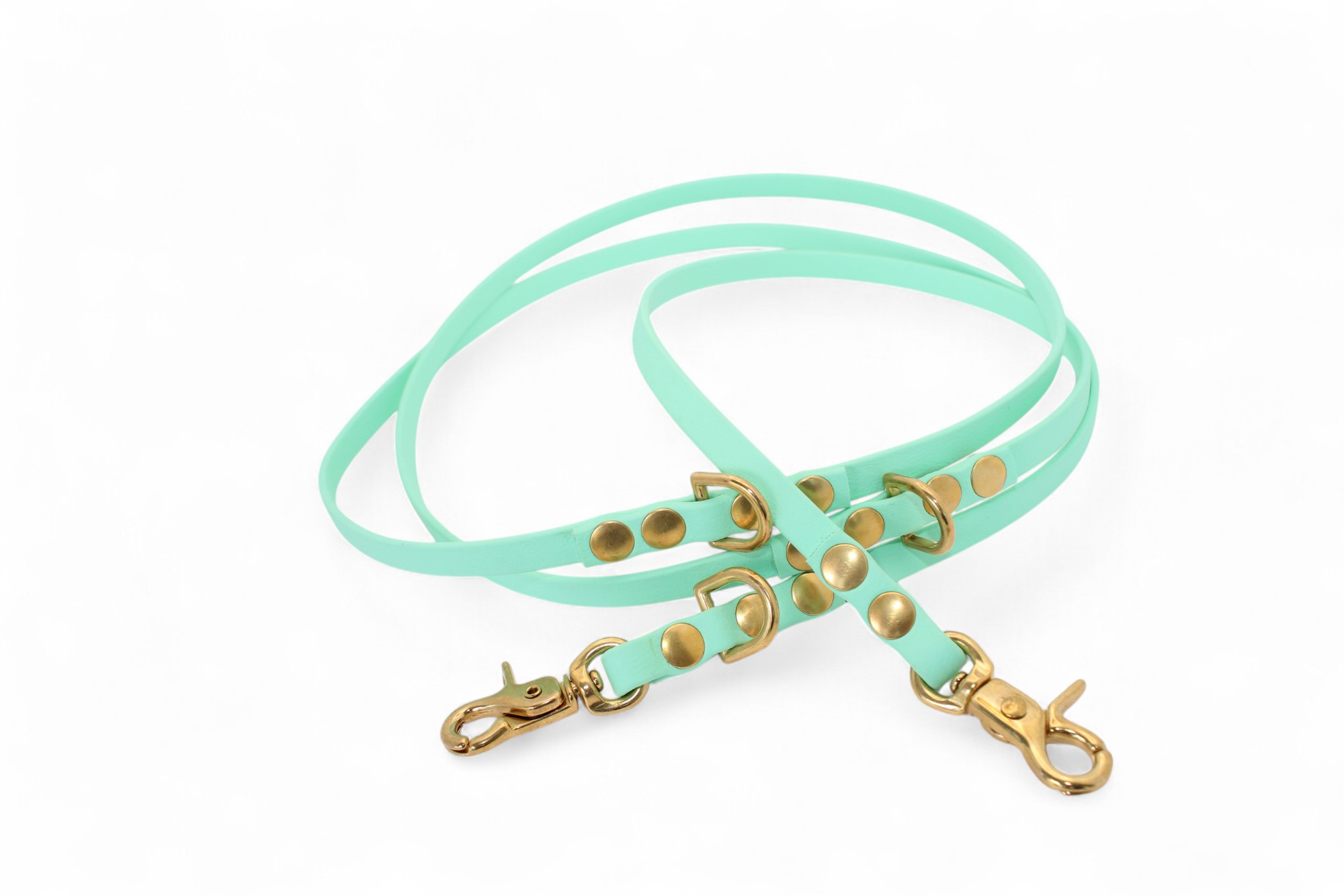 LIQUIDAZIONE STOCK: Guinzaglio multi-clip ACC Biothane® 165 cm / 13 mm – menta morbida con finiture in ottone