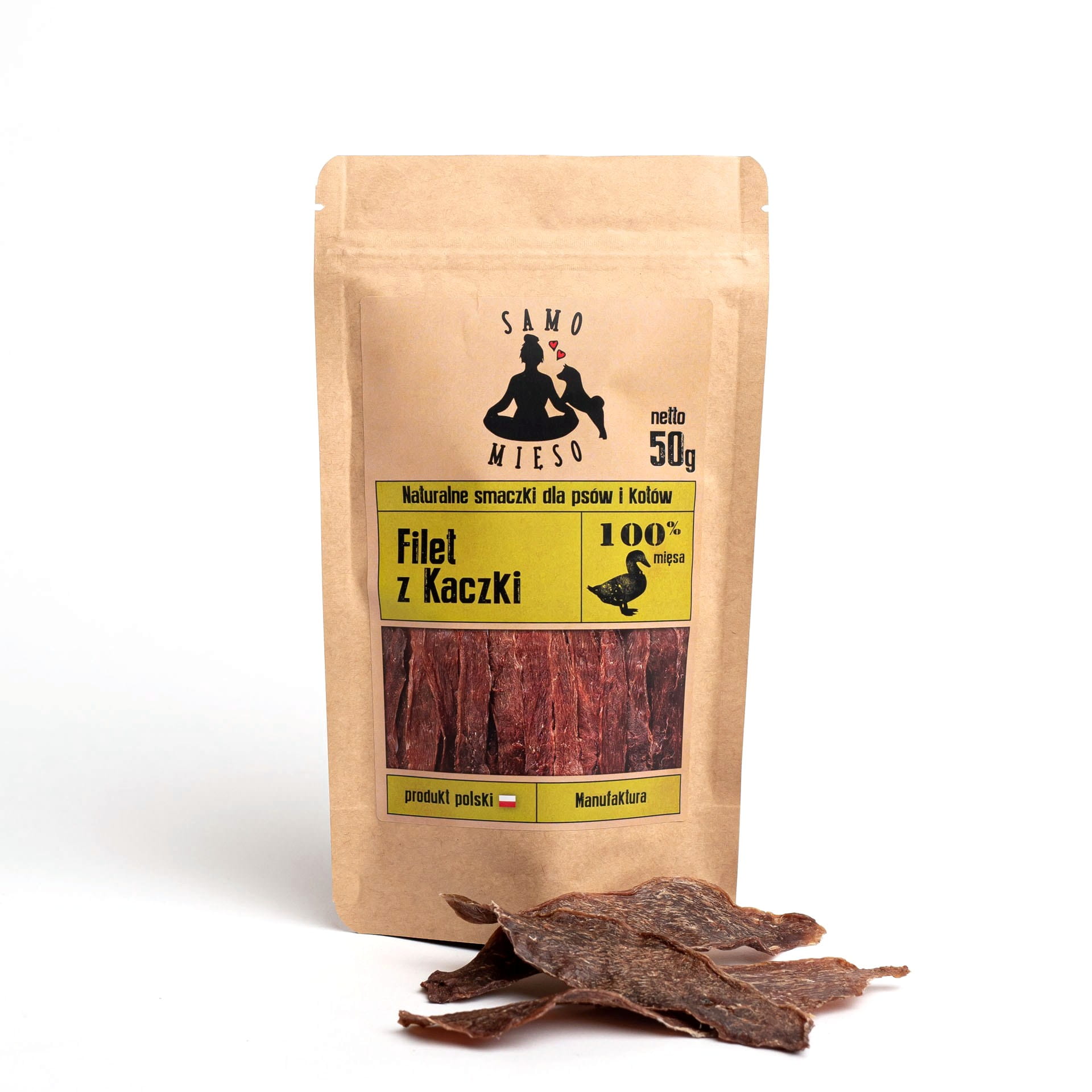 Give your pet the very best with SAMO MIĘSO Duck Fillet Slices – premium, all-natural meat treats made from 100% duck fillet. These single-ingredient treats are gently air-dried at low temperatures using a proprietary warm air drying system that locks in nutrients and preserves the natural structure of the protein.