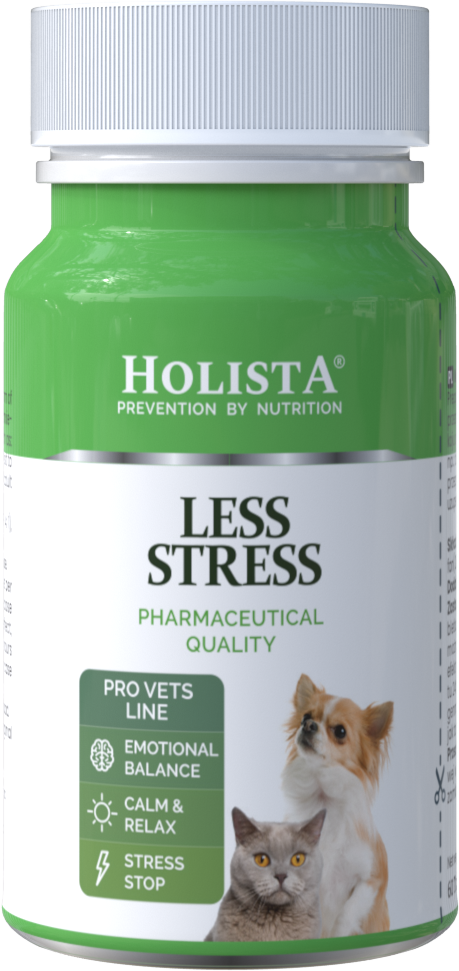 A preparation for dogs and cats in the form of tablets, intended to relieve symptoms of anxiety and fear in stressful situations such as storms, fireworks, travel, moving, or a visit to the groomer. Designed for adult animals, this product contains chamomile and valerian extracts, which promote natural calm and relaxation. It allows for a calm and comfortable recovery from unpleasant and stressful situations.